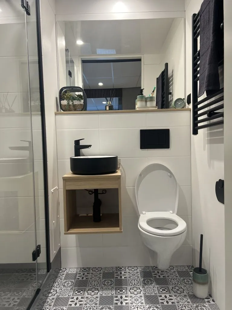 Een efficiënt ingedeelde toiletruimte die optimaal gebruikmaakt van minimale vierkante meters.