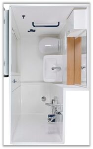 Deze S-pod kan snel worden gemonteerd: in slechts 2 uur voor nieuwbouwprojecten en in minder dan 6 uur voor renovatieprojecten. Dankzij de mogelijkheid om de badkamer in 7 delen te demonteren, kan deze eenvoudig door een standaard 60 cm brede deur worden vervoerd en geplaatst.