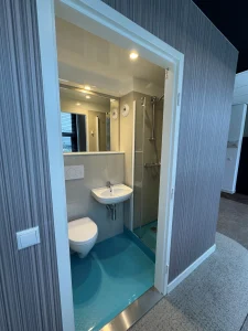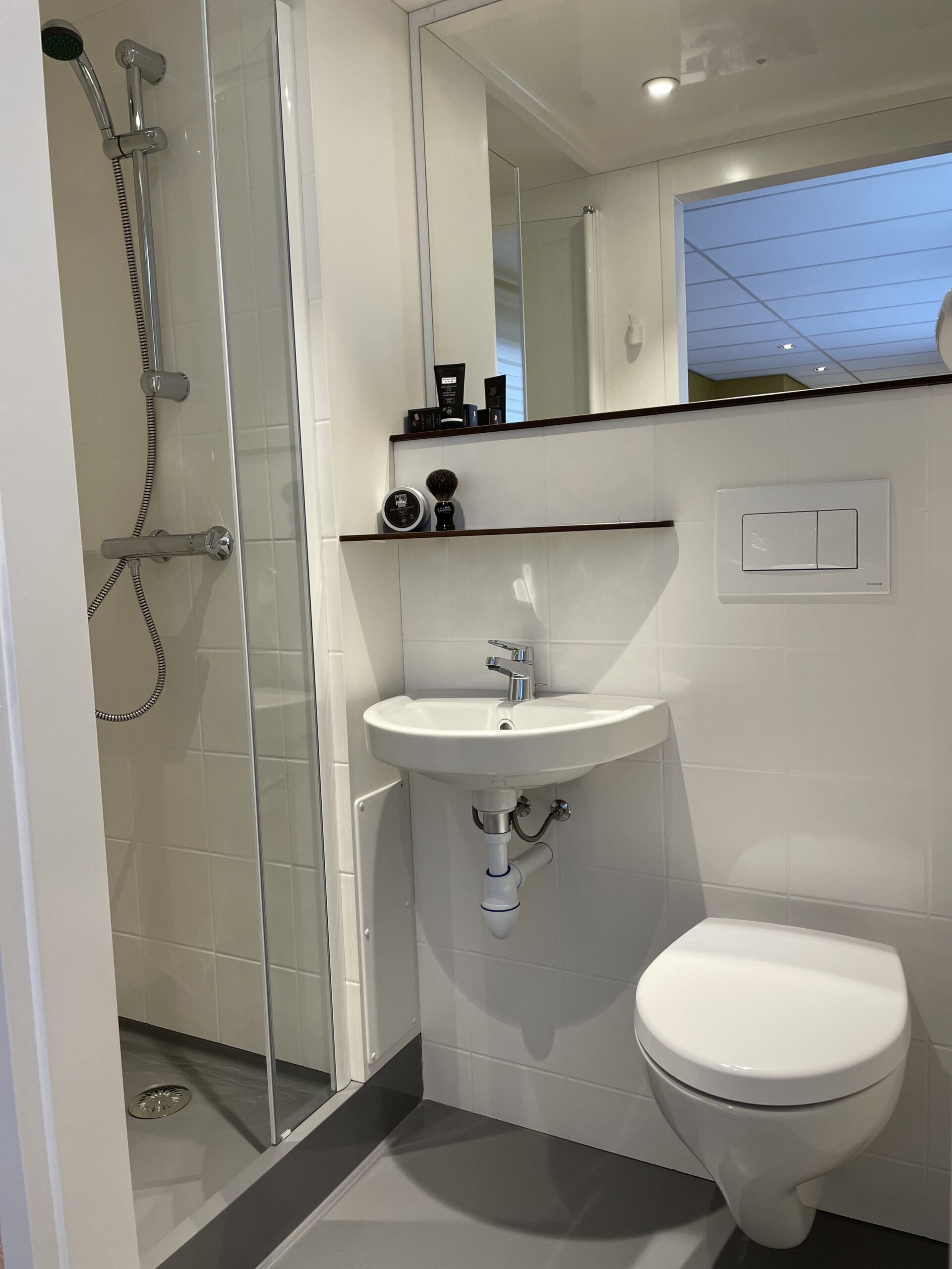 - Optioneel: (Scheer)stopcontact met afsluitdeksel, glazen douchescherm, RVS geborstelde accessoires, enz.