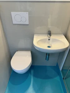 - Hangtoilet met Geberit inbouwreservoir, toiletbril en deksel, toiletrolhouder