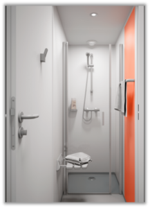 De douchestelling in onze Like serie biedt ook een strakke, modulaire luxe douche, eveneens compact en geschikt voor installatie in diverse ruimtes. Ook deze S-pod monteren wij snel, met dezelfde tijdsduur als de toiletopstelling. Optioneel zijn er 57 verschillende kleuren deuren beschikbaar. De afmetingen zijn 146 cm in lengte en 99 cm in breedte. Technische tekeningen en autocad zijn op verzoek beschikbaar.